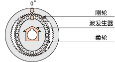 將3件基本零件組合。柔輪隨波發生器而變形為橢圓狀,橢圓的長軸部分則與剛輪小齒部分互相嚙合,而短軸部分小齒則完全呈脫離狀態。 |